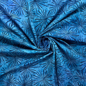 A high quality 100% cotton batik fabric featuring a firework print. This John Louden fabric features a unique design with deep colours, hand printed by specialist craftsmen.