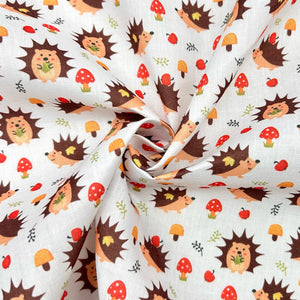 Autumn Hedgehog Polycotton Fabric- available now at the UK's lowest price!