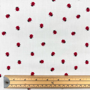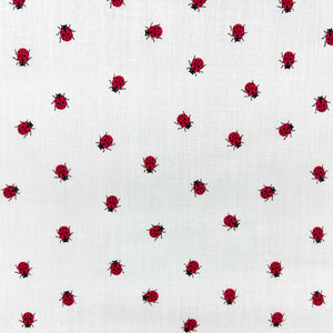 A lightweight, printed polycotton fabric featuring a ladybug print on an ivory background. This fabric is perfect for a range of dressmaking projects such as children’s clothing, shirts, and summer dresses.