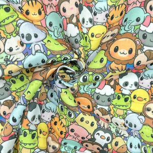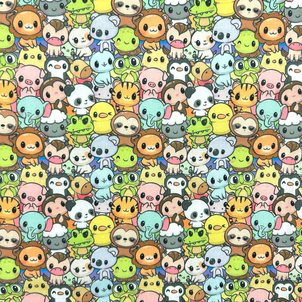 A lightweight, digitally printed polycotton fabric featuring an animal faces print. This fabric is perfect for a range of dressmaking projects such as children’s clothing, shirts, and summer dresses.