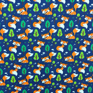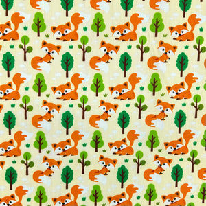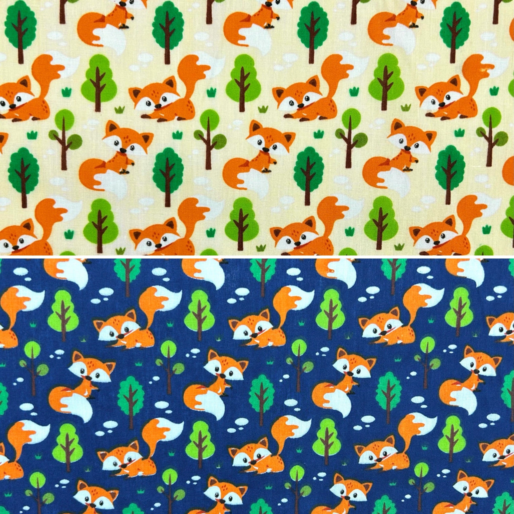 A lightweight, printed polycotton fabric featuring a fox and trees print. This fabric is perfect for a range of dressmaking projects such as children’s clothing, shirts, and summer dresses.