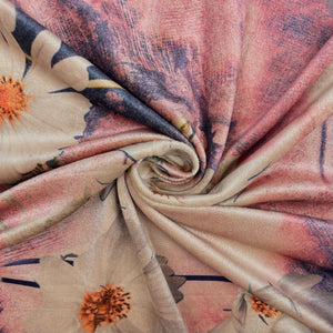 A digitally printed, medium-weight, velvet/velour fabric featuring a floral design, available in 3 colours. This fabric is durable and features a soft velvety texture, along with a wonderful drape and comfortable four way stretch. It is suitable for a range of dressmaking projects such as tops, evening wear dresses, fancy dresses, skirts, and more.