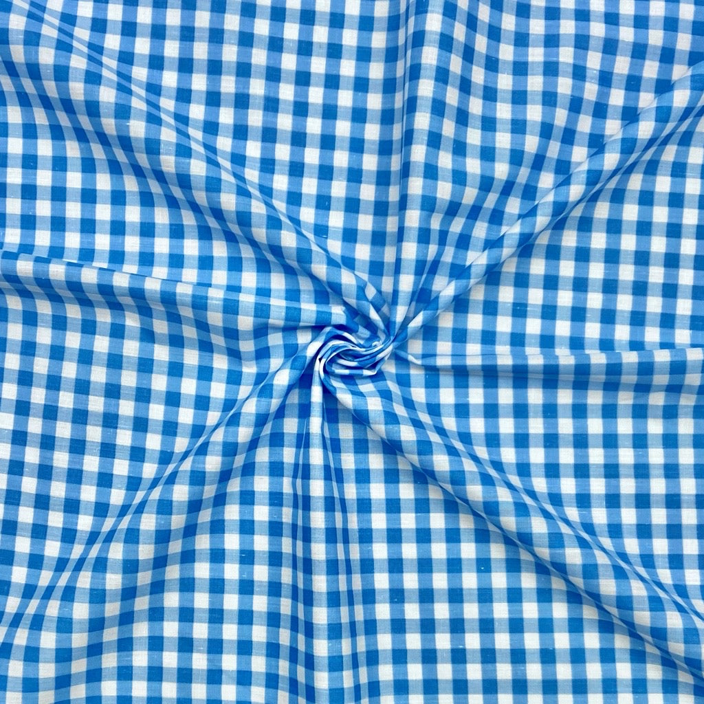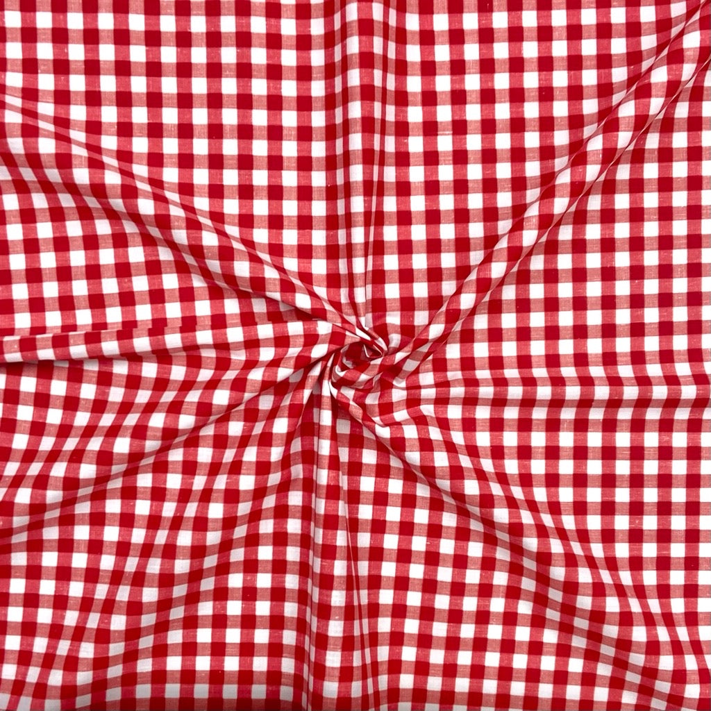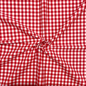 A lightweight polycotton fabric featuring a gingham/checkered design available in 10 colours. This fabric's breathable and versatile nature makes it perfect for a wide range of dressmaking projects, such as children’s clothing, shirts, and summer dresses.