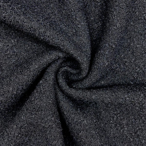 A plain, heavy-weight, boucle fabric in a black colour. As a boucle fabric, it has raised, knotted yarn giving the fabric a sheep wool texture. This warm and comfortable fabric is suitable for a wide range of winter projects including coats, skirts, dresses, waistcoats, and more!
