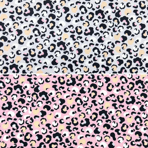 A waterproof soft shell fabric featuring a leopard print, available in 2 colours. Softshell fabric is a waterproof fabric bonded with fleece fabric on the reverse side. Perfect for making warm, waterproof jackets.