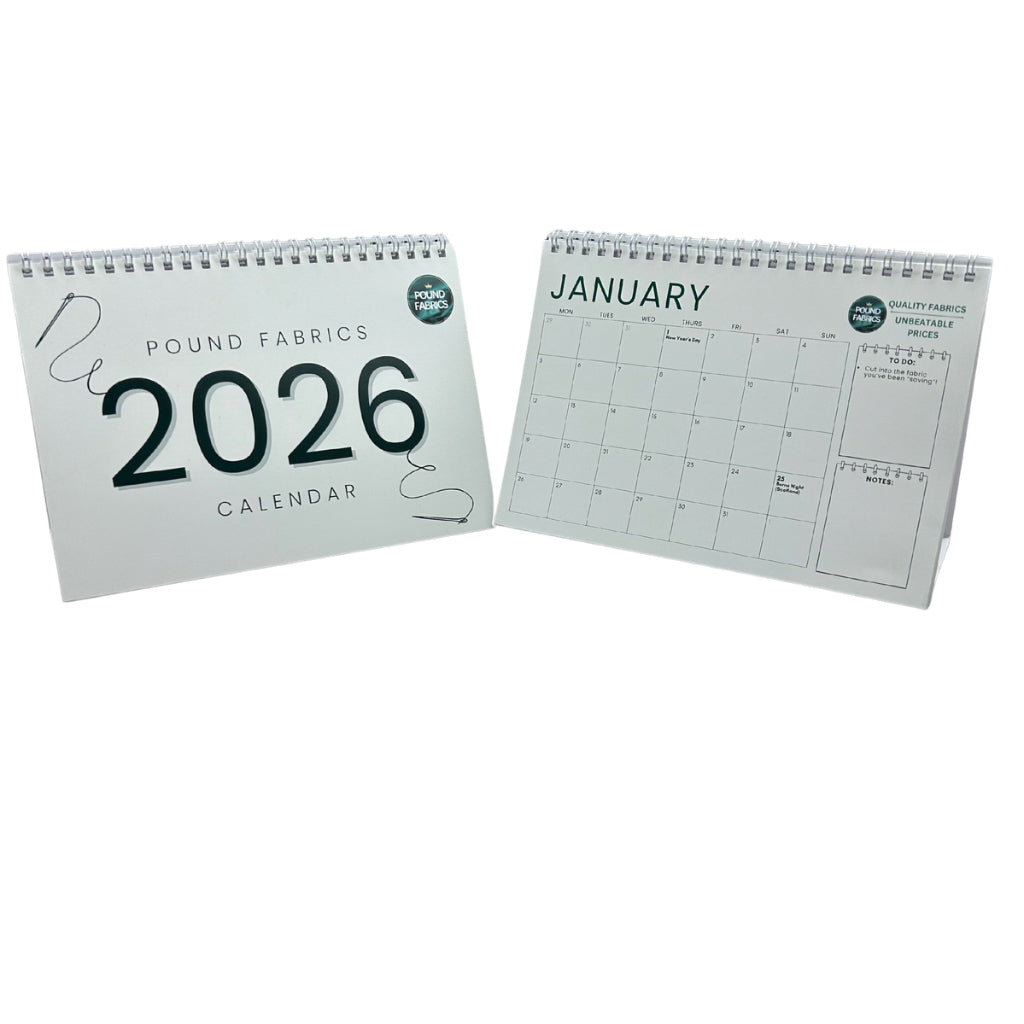 This is an A5 desktop calendar. A perfect addition to your sewing table and perfect for planning which fabrics you need throughout the year!